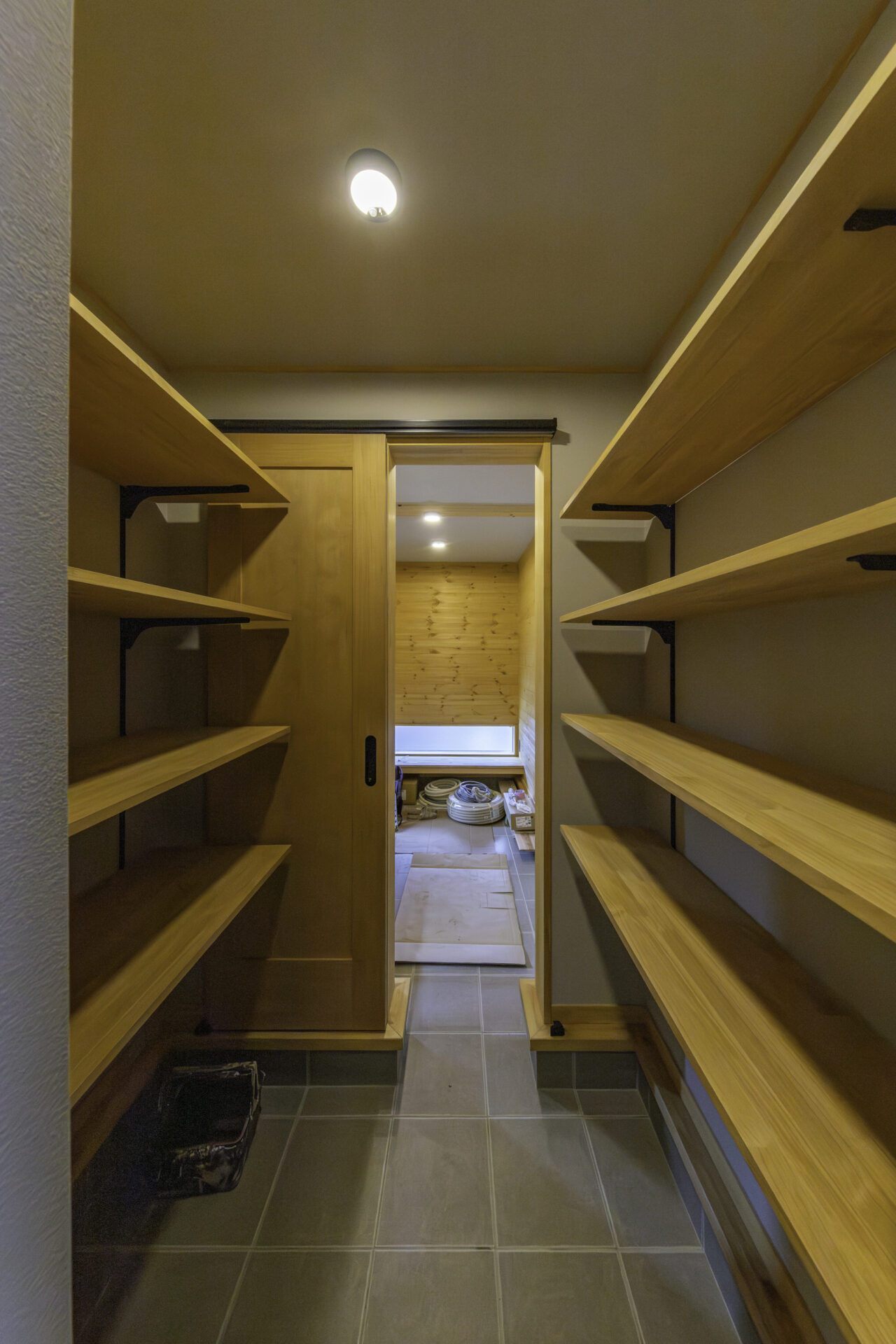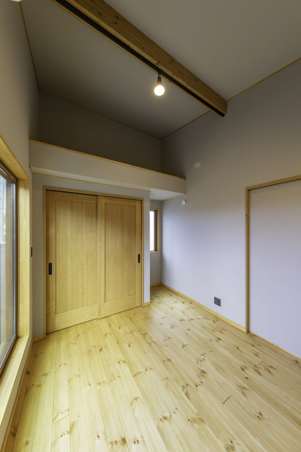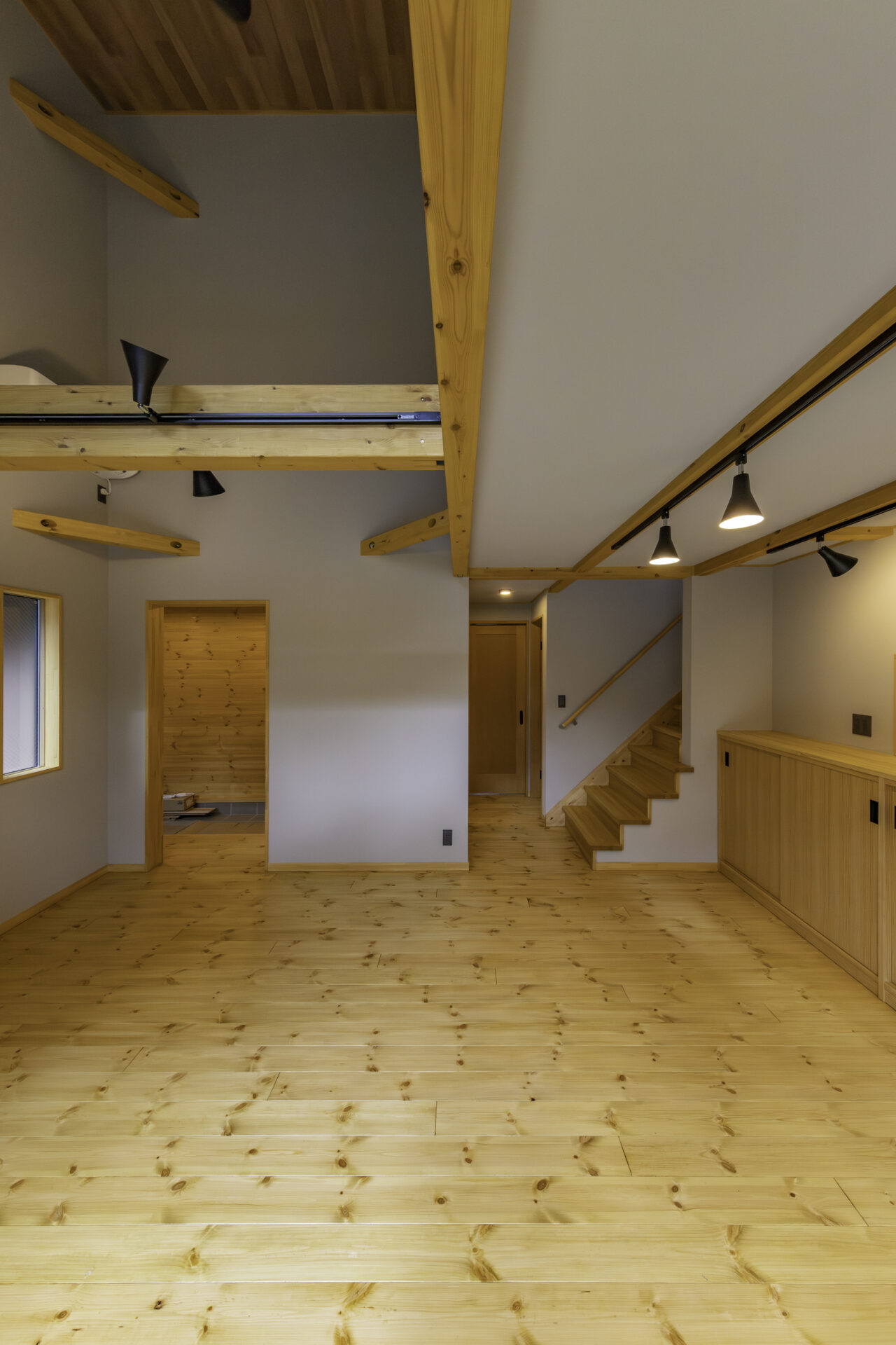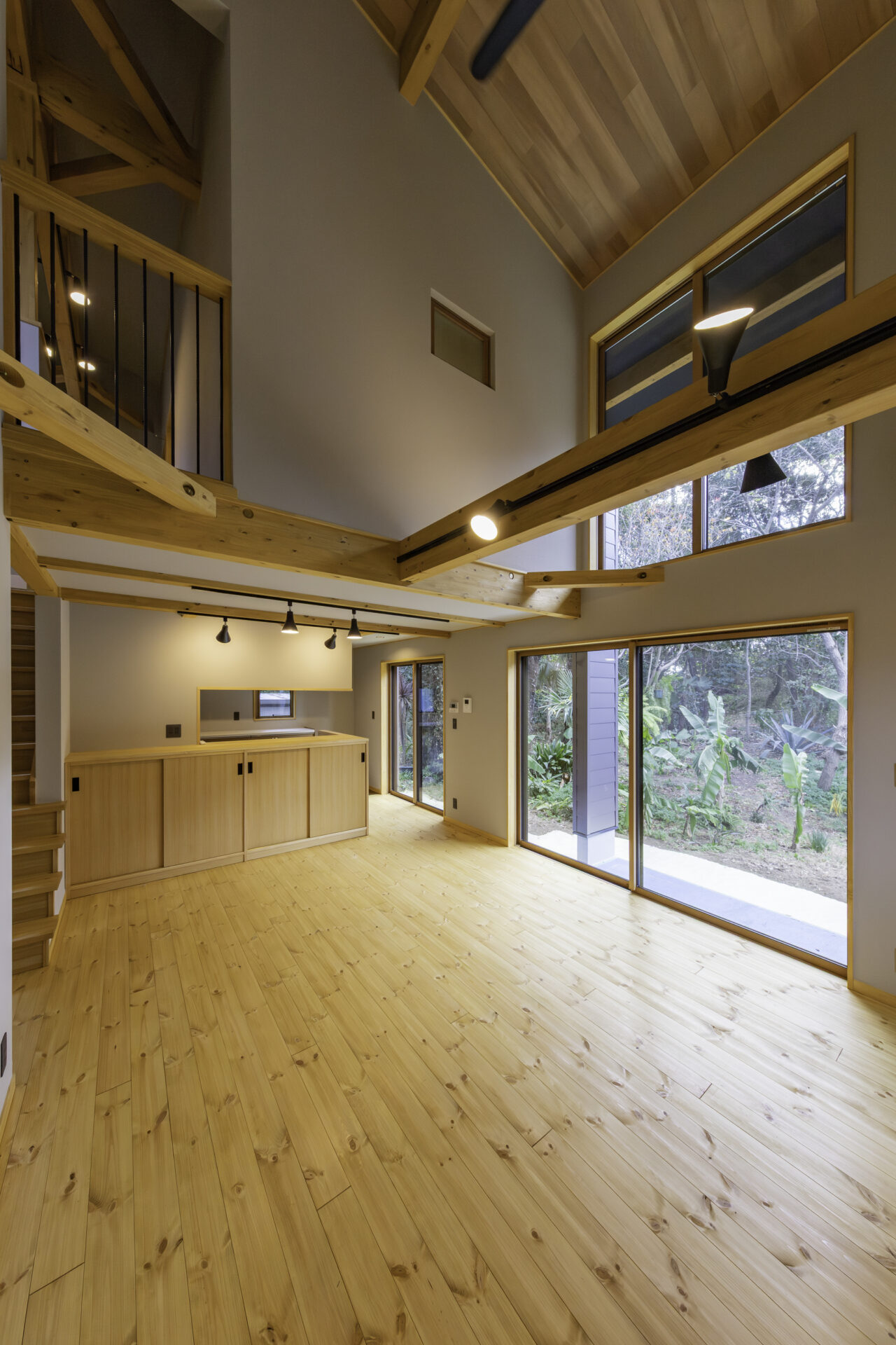 初めての見学会へのご来場から約3年。再び足を運んでいただき、じっくりと時間を重ねて完成したBOOOTSの住まいです。外観は、ブラックメタリウムのガルバリウム鋼板に、ナチュラルオーク色で塗装した木部を組み合わせ、周囲の自然に溶け込む落ち着いた佇まいに。BOOOTSをベースに、弊社オリジナルプラン「GLAMP」のエッセンスを取り入れた“いいとこ取り”のプランは、ご友人ご夫婦が建てられた住まいからのヒントも活かしながら、ご夫婦の想いを丁寧にかたちにしています。南側には借景を最大限に活かすため、大きな窓を配置。ご家族が1階で過ごす時間を大切にできるよう、家事動線に配慮しつつ、景色を身近に感じながら心地よく過ごせる空間としました。玄関には、靴の脱ぎ履きはもちろん、ご近所の方が立ち寄った際にも気軽に腰掛けられるベンチを設置。壁面は板張り仕上げとし、住まいの“顔”として温もりのある空間を演出しています。家族用と来客用の動線を分けることで、買い物帰りにはシューズインクロークを通って、そのままダイニングへ向かえる使い勝手の良さも魅力です。1階には和室を設け、ご両親が泊まりに来られた際にも安心。吹き抜け天井には木目調のクロスを使用し、視線の抜けとやさしい雰囲気を両立しています。キッチンや洗面室の床にはヘリンボーン調のクッションフロアを用い、見た目の美しさとコストバランスにも配慮しました。2階には個室を3部屋と大容量のウォークインクローゼットを完備。天井高のあるお部屋にはロフトを設け、季節物の収納にも対応しています。また、西面にはバルコニーを設け、条件が揃えば富士山を望むこともでき、日常の中でふと特別な景色に出会えるのも、この住まいならではの魅力です。自然を身近に感じながら、暮らしやすさにも細やかに配慮した、永く愛せる一棟に仕上がりました。