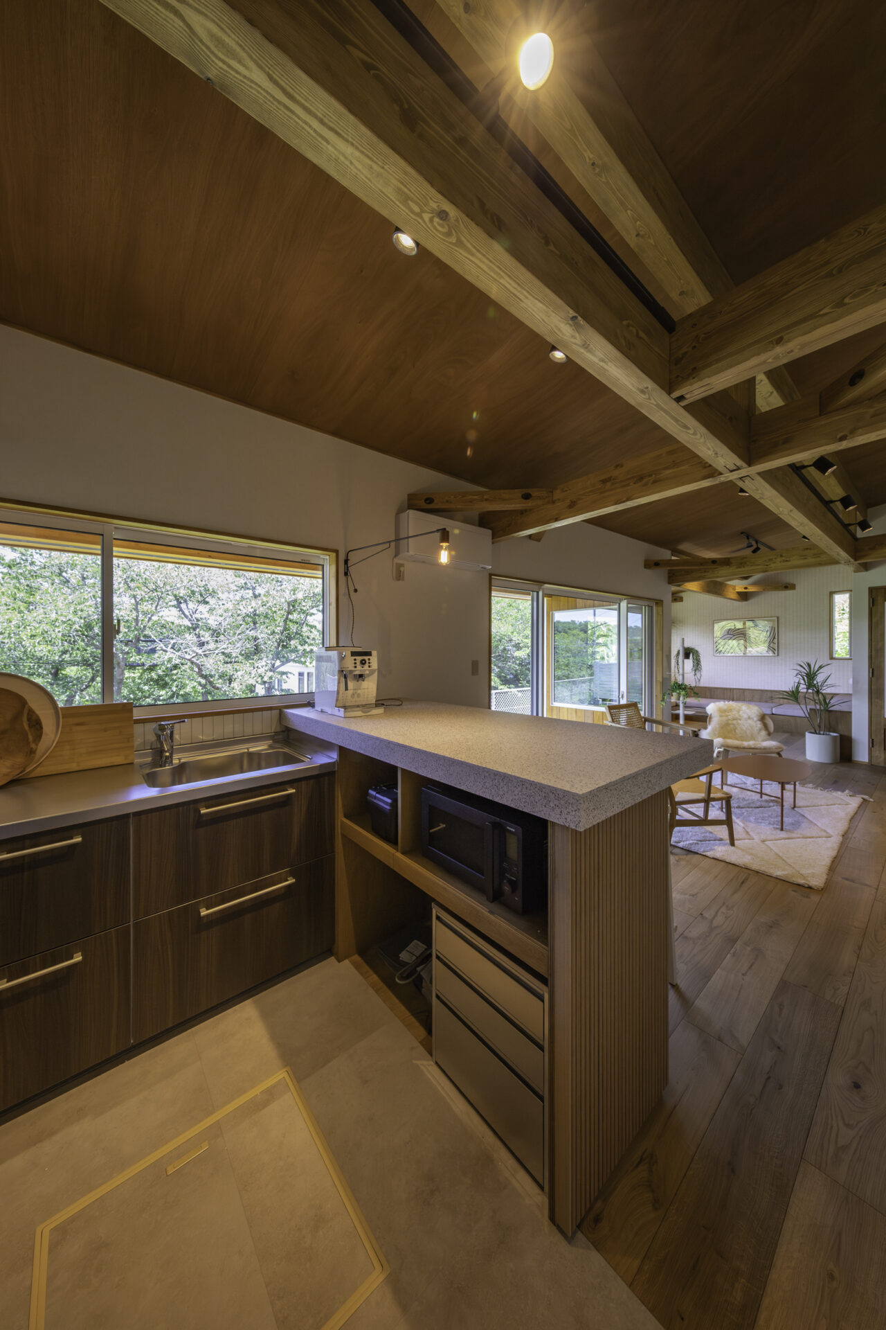 湘南・大磯町の穏やかな空気に包まれて佇む、平屋の住まい。この家は、レコードや音楽のある時間を大切にしたいというオーナー様の想いから生まれました。エイトデザインの監修のもと、シンプルなCOVACOのプランをベースに、“自分たちらしい暮らし”を丁寧に重ねた一棟。大きな窓から光と風を取り込み、自然と内と外がつながる空間構成が、湘南らしい心地よさを日常の中に運んでくれます。リビングでは、レコードの音がゆったりと流れ、忙しさから少し距離を置いた、静かで贅沢な時間が過ぎていきます。平屋ならではの無駄のない動線と、コンパクトながらも開放感のある間取りは、暮らし始めてからこそ実感できる心地よさです。週末を過ごすセカンドハウスとして計画された住まいですが、その工夫や設えは、これから平屋での暮らしを考える方にとっても、多くのヒントが詰まっています。“好き”を大切にしながら、肩の力を抜いて暮らす。湘南という土地に寄り添いながら完成した、等身大で心地よい平屋の住まいです。