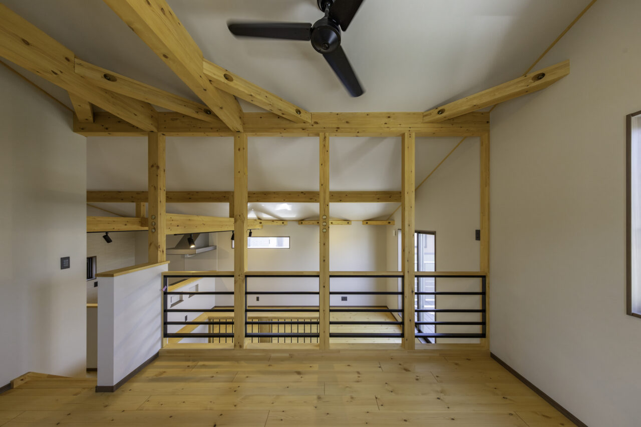 1階の個室をあえて設けず、WICとシューズクロークを追加することで収納力を高めたWAVE。多趣味なオーナー様が、住まいの中で思いきり趣味を楽しめるよう、打ち合わせを重ねながらプランを練り上げました。将来的にはインサイドストッカーをオーディオルームとして使ったり、アウトドアストッカーではバイクを整備したりと、暮らしの変化にも柔軟に対応できる間取りが魅力。スキップフロアに設けたセカンドリビングは、在宅ワークや趣味の時間など、多目的に活躍します。収納・趣味・仕事、それぞれを無理なく両立できる動線計画と、WAVEならではの立体的な空間構成が、日々の暮らしをより豊かにしてくれる住まいです。