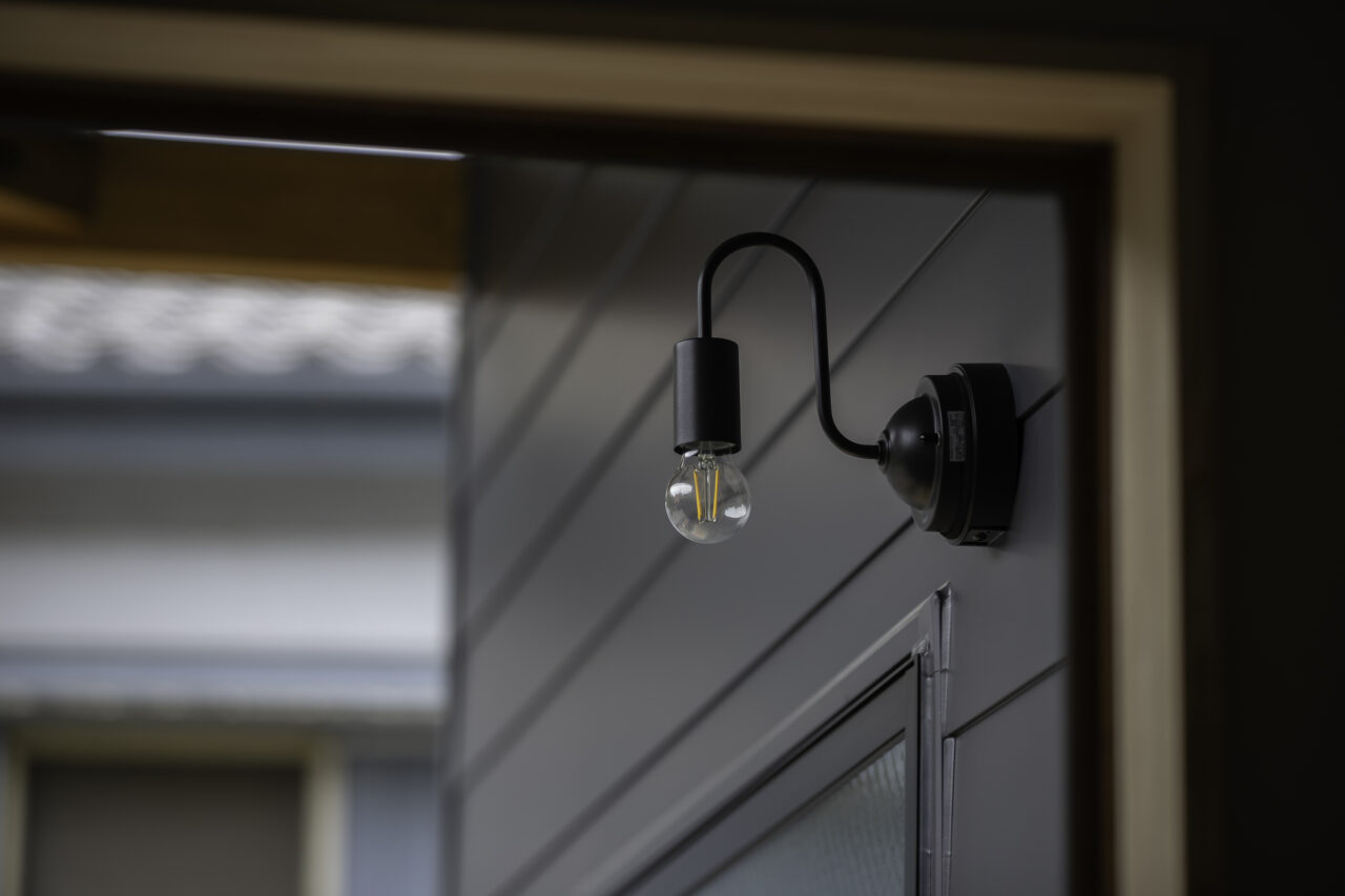 外壁にはダークグレーの横貼りガルバリウム鋼板を採用。木部や玄関ドアにはオーク系の色合いを合わせ、窓枠などはブラックで統一することで、スタイリッシュに仕上がったLOAFER。室内はアクセントクロスを使わず、全体をグレーのクロスでまとめ、木部は無塗装のままの風合いを生かしています。シンプルなグレージュの空間に、ポイントとしてアーチを取り入れることで柔らかさが加わり、オーナー様のオリジナリティが光る住まいとなりました。